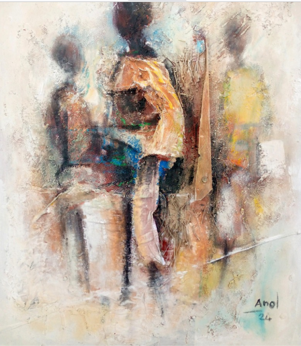 Cet artiste simple, généreux, autodidacte et éclectique crée surtout des oeuvres abstraites. Il mélange à la peinture (acrilique ou huile) de la terre, des pigments naturels, ainsi que des matériaux de récupération.