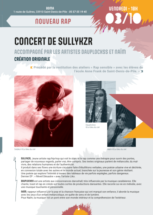 Concert de Sullykzr accompagné par les artistes Dauplockss et Naim